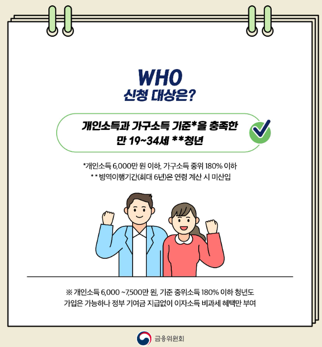 - 소득 - 총급여 6000만원 이하로 국세청 신고소득이 있어야 가입 가능