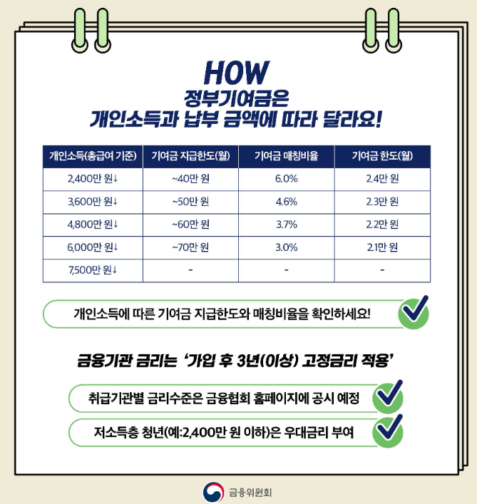 - 정부기여금 - 월 최대 2만4천 (5년간 최대 144만원)