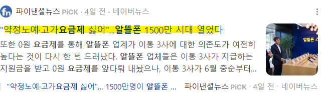 알뜰폰 요금제는 국민들이 이동 통신 3사 (SKT, KT, LGU+)의 통신망을 기반으로 하되, 더 저렴한 가격에 통신 서비스를 이용할 수 있도록 하는 국가에서 시행된 정책입니다. 알뜰폰은 기존 통신사의 품질을 유지하면서도 통신 요금을 절감할 수 있어 많은 사람들에게 인기가 있습니다.