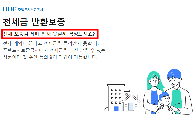 전세계약 종료 후 임대인이 임차인에게 반환해야 하는 전세보증금의 반환을 책임지는 제도입니다. 전세보증보험 가입기관으로는 주택도시보증공사,한국주택금융공사,서울보증보험이 있습니다.