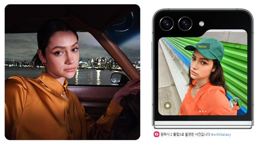 갤럭시z플립5는 플렉스 모드를 지원하여 화면을 펼치지 않고도 편리하게 사진을 찍을 수 있습니다. 새로운 촬영 경험을 제공하는 플렉스캠은 순간을 놓치지 않고 실감나게 담을 수 있습니다